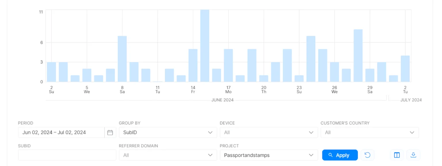 For each brand’s partner program, you can read stats to understand what works, what doesn’t, and what needs a quick fix. Every project is different, and we love analyzing each to maximize profit and serve our audiences better. The fusionpulse.org dashboard lets you group by date range, project, devices, and customer country.